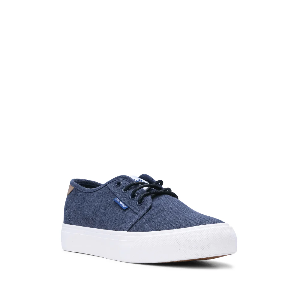 Com o selo de herança da Dunlop, marca reconhecida pela qualidade e durabilidade de calçado, esta sapatilha destaca-se pelo design em tecido resistente na tonalidade azul marinho, pelo interior acolchoado que oferece conforto ao longo do dia e pela sola branca antiderrapante que assegura tracção em diferentes superfícies. Uma pequena etiqueta Dunlop evidencia a autenticidade e o cuidado na construção.