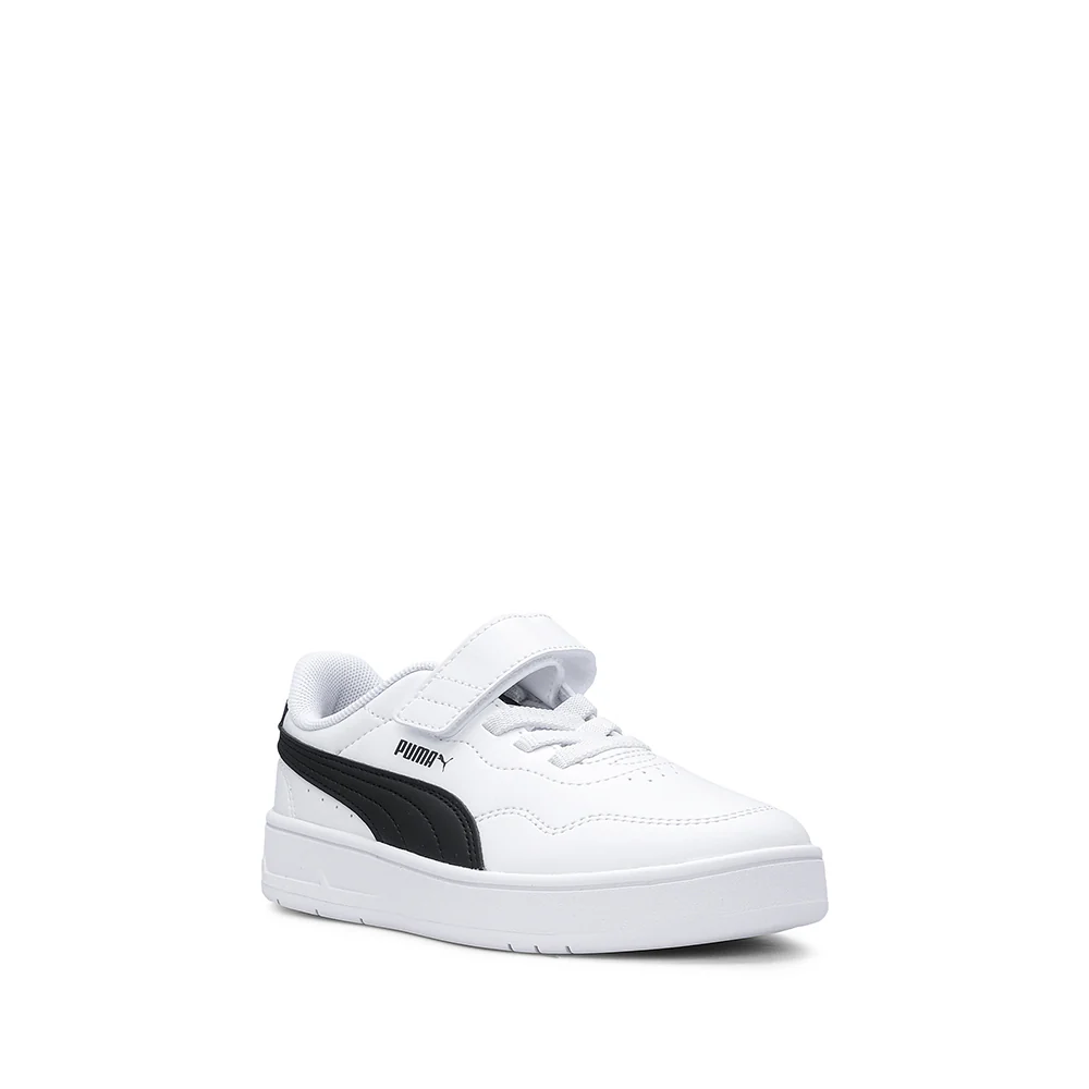 A Puma apresenta a Sapatilha Casual Criança Branco e Preto, uma sapatilha infantil que alia conforto e estilo para os pés em crescimento. O acabamento em branco com detalhes pretos oferece um visual versátil e atual, adequado a várias ocasiões do quotidiano das crianças.