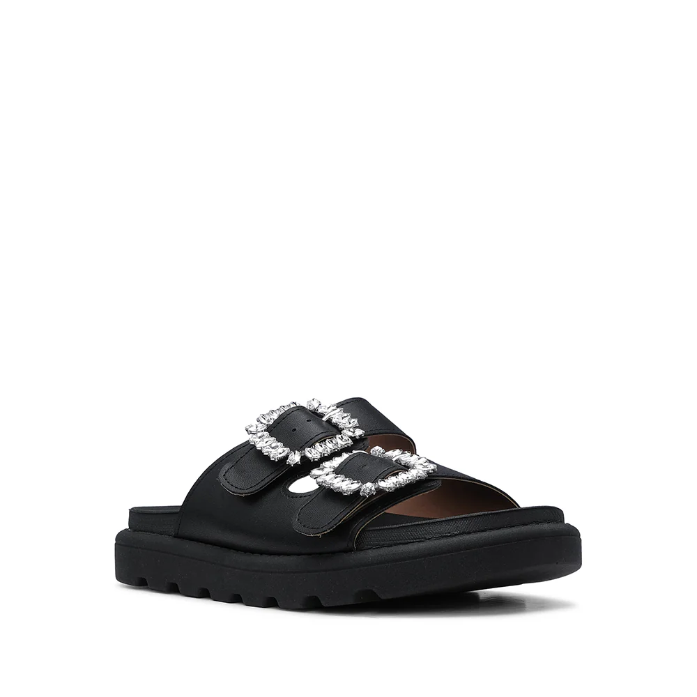 - Detalhes: fivelas com strass para um toque de brilho discreto